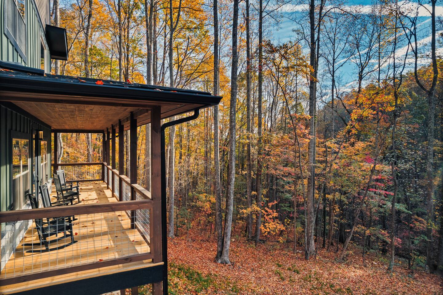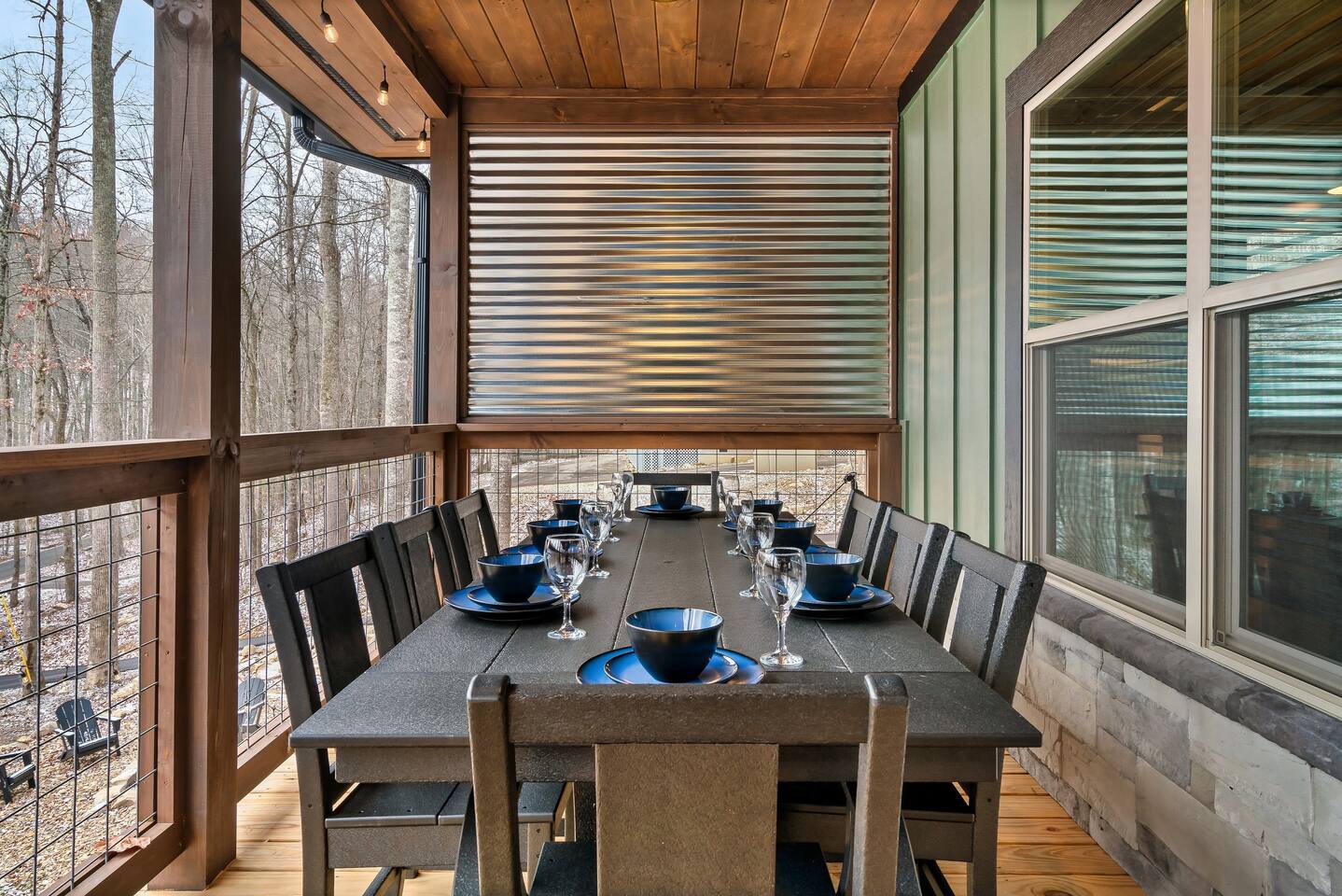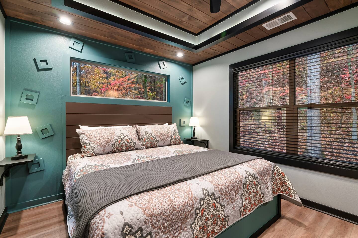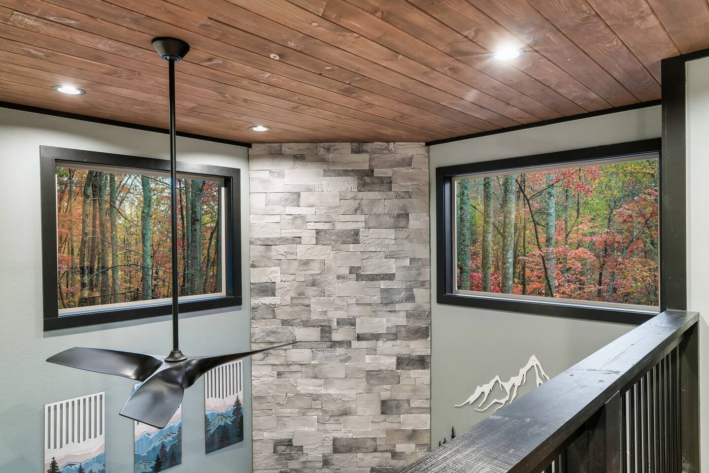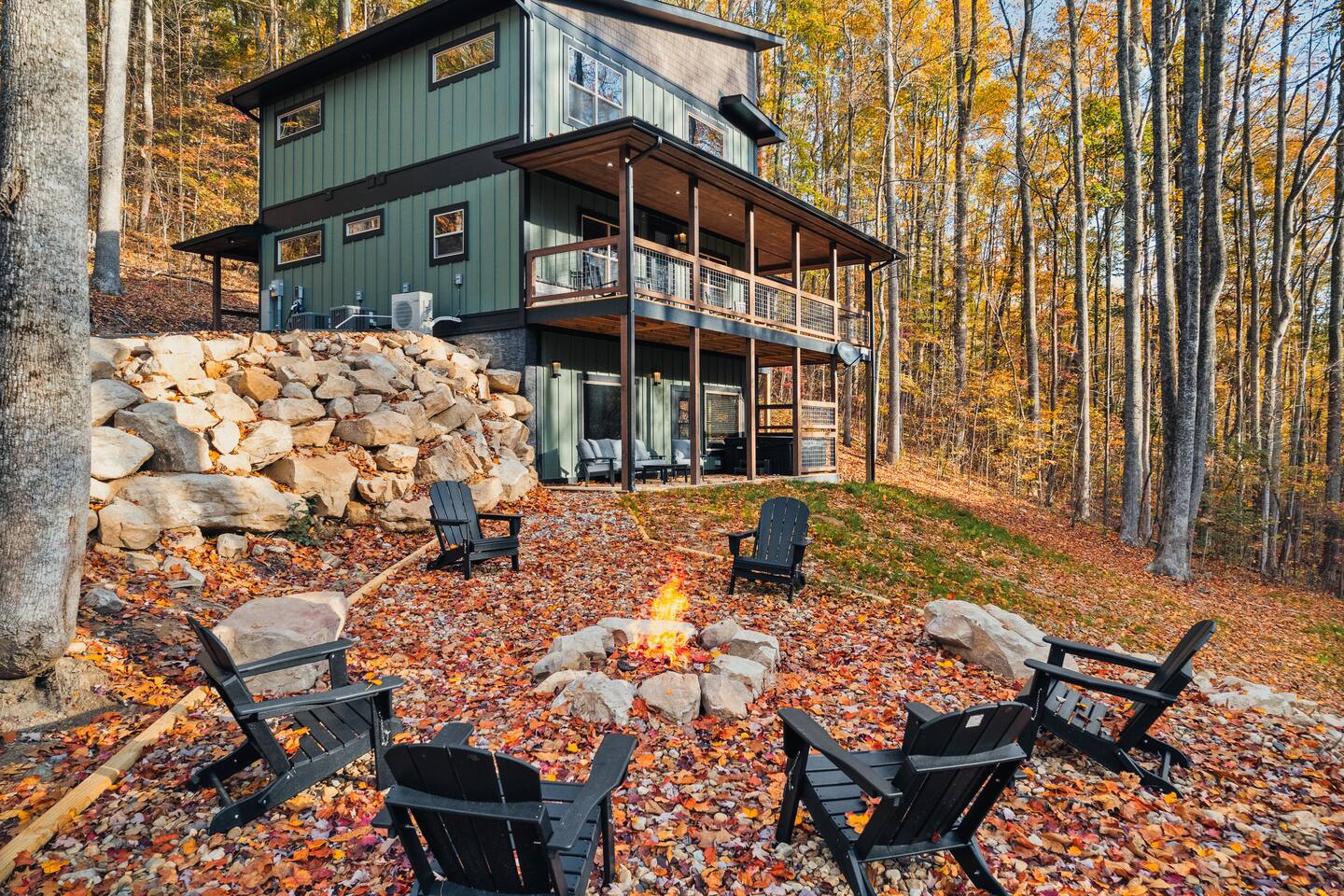 Welcome to Bluff Mountain Retreat - Our newly constructed modern cabin, nestled on a serene 2-acre wooded lot in Sevierville, Tennessee. Located less than 5 miles from the heart of Pigeon Forge, this retreat strikes the perfect balance—close enough to enjoy all the action, yet far enough away to provide a peaceful, quiet escape. The cabin features three spacious bedrooms, each with king beds and en suite baths. The main level bedroom is designed for accessibility, making it suitable for everyone. Additionally, there are two pull-out sofas, one on the main floor and one on the bottom floor, conveniently located next to the air hockey game and arcade game table, providing extra sleeping space and entertainment options. A spacious laundry room is conveniently located on the top level. Enjoy the indoor pool on the bottom level and unwind in the outdoor hot tub, which is situated near the fire pit. The outdoor living area offers a cozy setting for relaxation with its owner fireplace and big screen TV. The cabin is equipped with six smart televisions located throughout the house for your entertainment needs. The property includes Wi-Fi to keep you connected during your stay. For added convenience, the cabin features an electric vehicle charger and is just 6 miles from Kroger and Publix grocery stores. The nearest gas station and Whaley's Country Store are both located just 2.5 miles away, making it easy to meet any additional needs during your visit. Large windows in every room allow natural light to fill the space and offer stunning views of the beautiful surroundings. Whether you are looking to explore the Great Smoky Mountains or simply relax in a tranquil setting, our cabin is the ideal destination for your next getaway. *10 miles to Dollywood *6 miles to The Island In Pigeon Forge *7 miles to The Titanic Museum In Pigeon Forge *12.5 miles to the Gatlinburg Welcome Center *15 miles to Anakeesta *15 miles to Ripley's Aquarium of the Smokies *17 Miles to Ober Mountain - Large, heated indoor pool with giant Baja Shelf for kids to play - Brand new, 4-person hot tub - Real wood-burning fireplace outside and electric fireplace inside - Giant, wood-burning fire pit just off the lower deck We can't wait for you to call Bluff Mountain Retreat home!