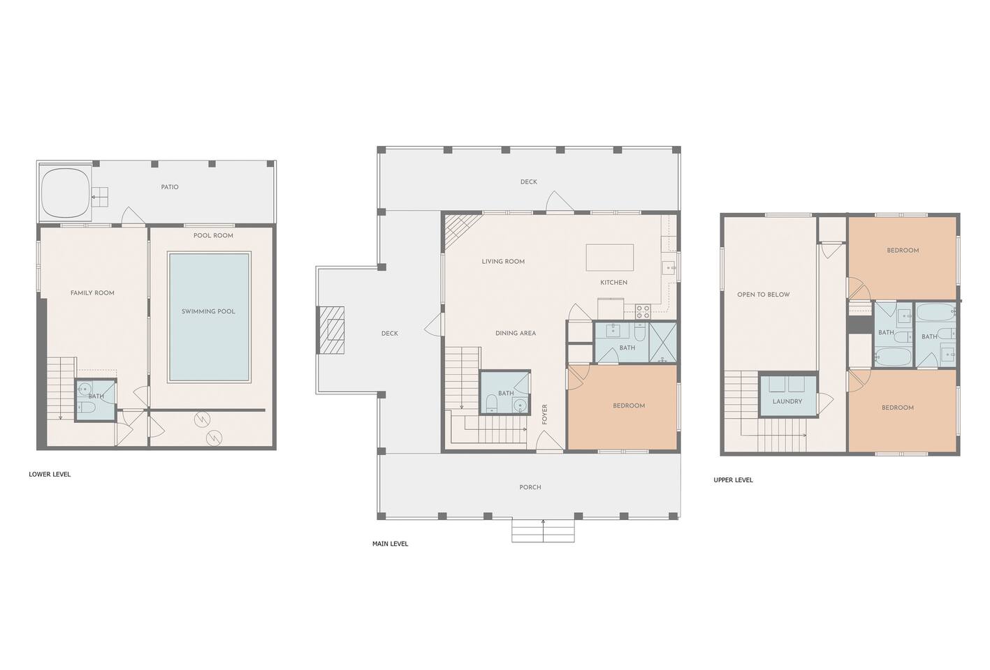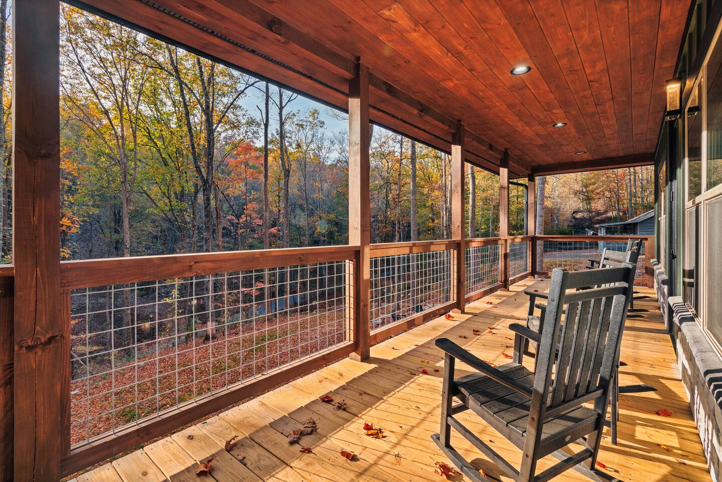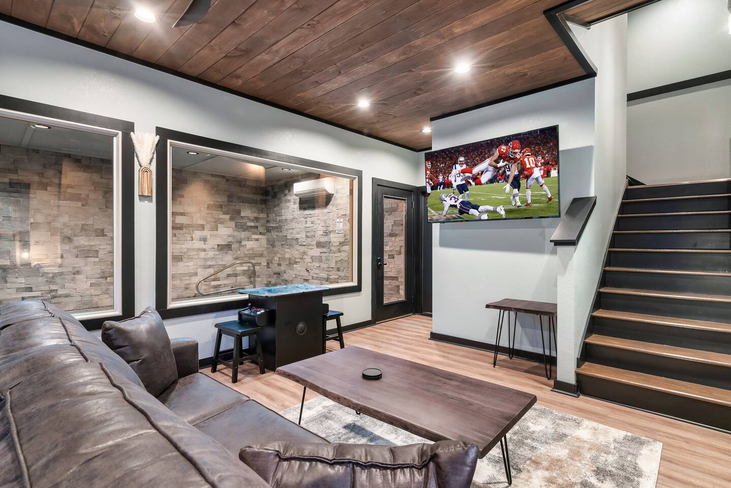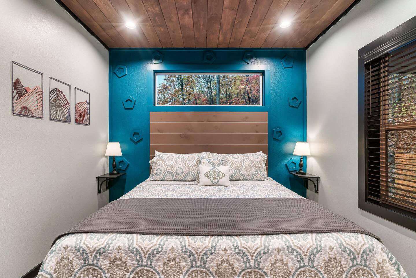 Welcome to Bluff Mountain Retreat - Our newly constructed modern cabin, nestled on a serene 2-acre wooded lot in Sevierville, Tennessee. Located less than 5 miles from the heart of Pigeon Forge, this retreat strikes the perfect balance—close enough to enjoy all the action, yet far enough away to provide a peaceful, quiet escape. The cabin features three spacious bedrooms, each with king beds and en suite baths. The main level bedroom is designed for accessibility, making it suitable for everyone. Additionally, there are two pull-out sofas, one on the main floor and one on the bottom floor, conveniently located next to the air hockey game and arcade game table, providing extra sleeping space and entertainment options. A spacious laundry room is conveniently located on the top level. Enjoy the indoor pool on the bottom level and unwind in the outdoor hot tub, which is situated near the fire pit. The outdoor living area offers a cozy setting for relaxation with its owner fireplace and big screen TV. The cabin is equipped with six smart televisions located throughout the house for your entertainment needs. The property includes Wi-Fi to keep you connected during your stay. For added convenience, the cabin features an electric vehicle charger and is just 6 miles from Kroger and Publix grocery stores. The nearest gas station and Whaley's Country Store are both located just 2.5 miles away, making it easy to meet any additional needs during your visit. Large windows in every room allow natural light to fill the space and offer stunning views of the beautiful surroundings. Whether you are looking to explore the Great Smoky Mountains or simply relax in a tranquil setting, our cabin is the ideal destination for your next getaway. *10 miles to Dollywood *6 miles to The Island In Pigeon Forge *7 miles to The Titanic Museum In Pigeon Forge *12.5 miles to the Gatlinburg Welcome Center *15 miles to Anakeesta *15 miles to Ripley's Aquarium of the Smokies *17 Miles to Ober Mountain - Large, heated indoor pool with giant Baja Shelf for kids to play - Brand new, 4-person hot tub - Real wood-burning fireplace outside and electric fireplace inside - Giant, wood-burning fire pit just off the lower deck We can't wait for you to call Bluff Mountain Retreat home!