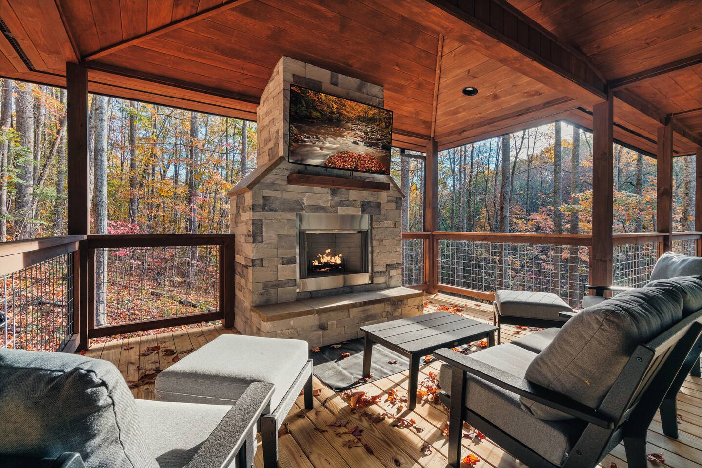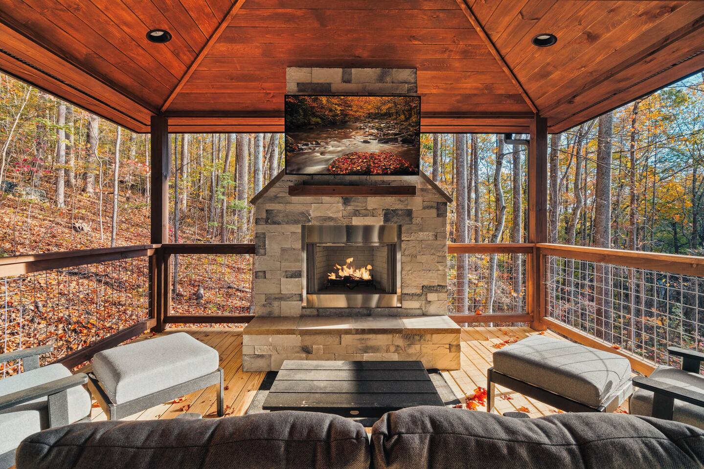 Large Indoor Pool! Brand New - New Construction! Sevierville Cabin with Pool, Hot Tub, Outdoor Living Room with Fireplace and TV, Fire Pit, and 3 King En Suite Bedrooms